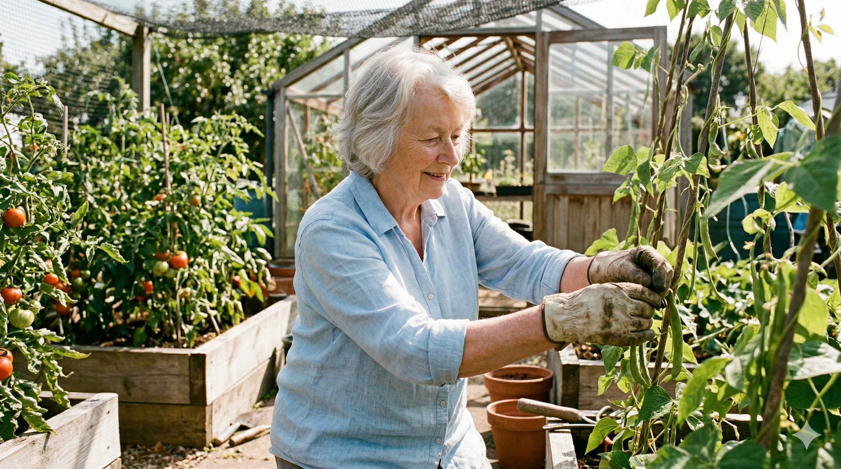 Mum in the garden she loved so much. This was taken the summer before she retired.