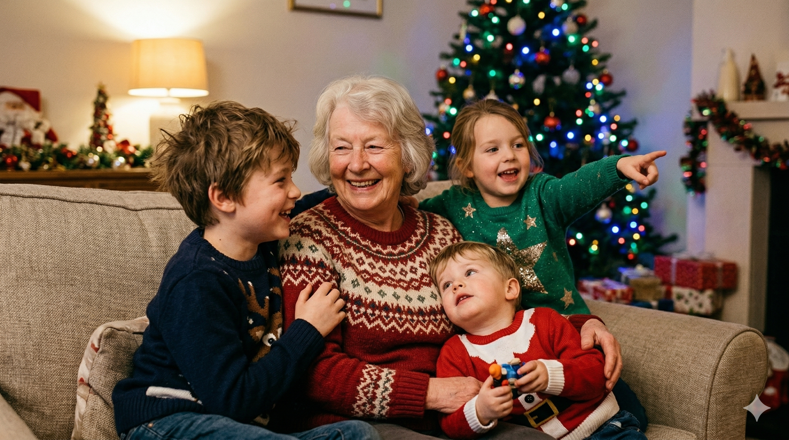 With her grandchildren at Christmas 2022. She was so happy that day.